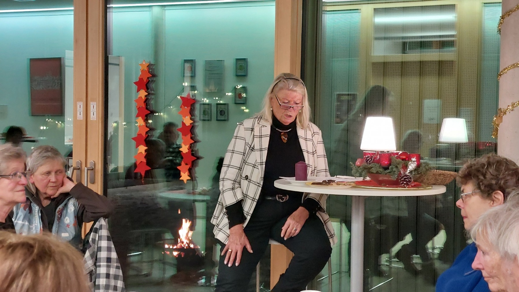 Zwei Mitglieder, Frau Lehmann und Frau Von Ende Pichler, lasen bei Kerzenschein Geschichten zur Winterzeit vor und bei Gesang und heißem Glögg ließ es sich gut plaudern.