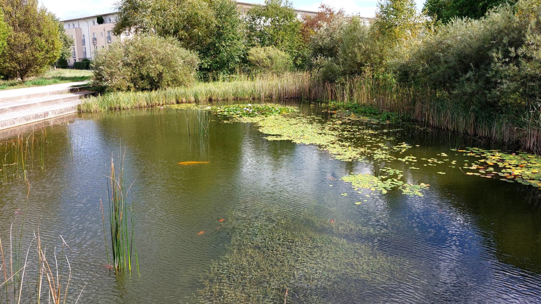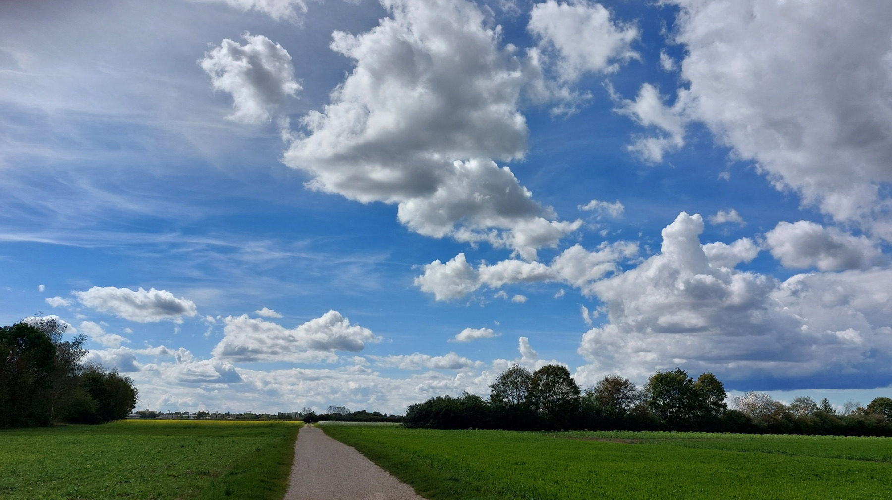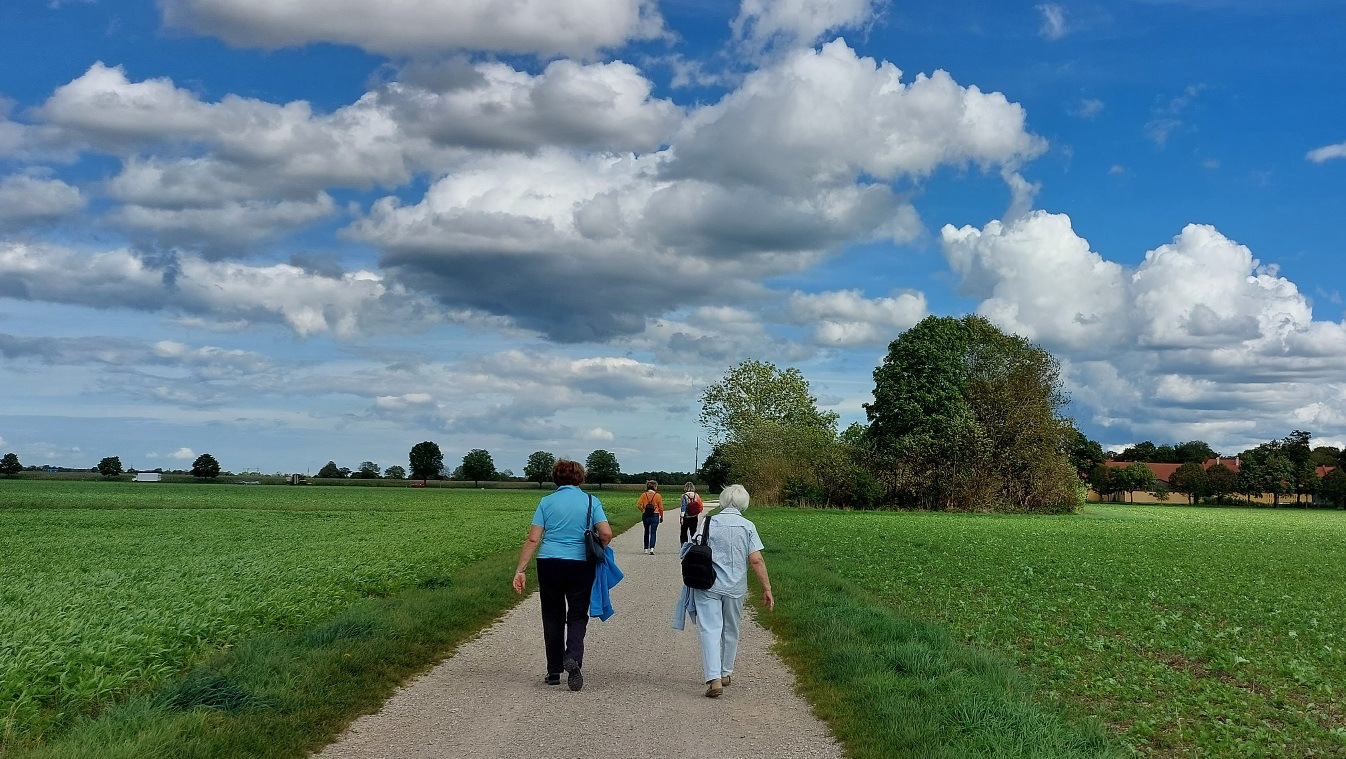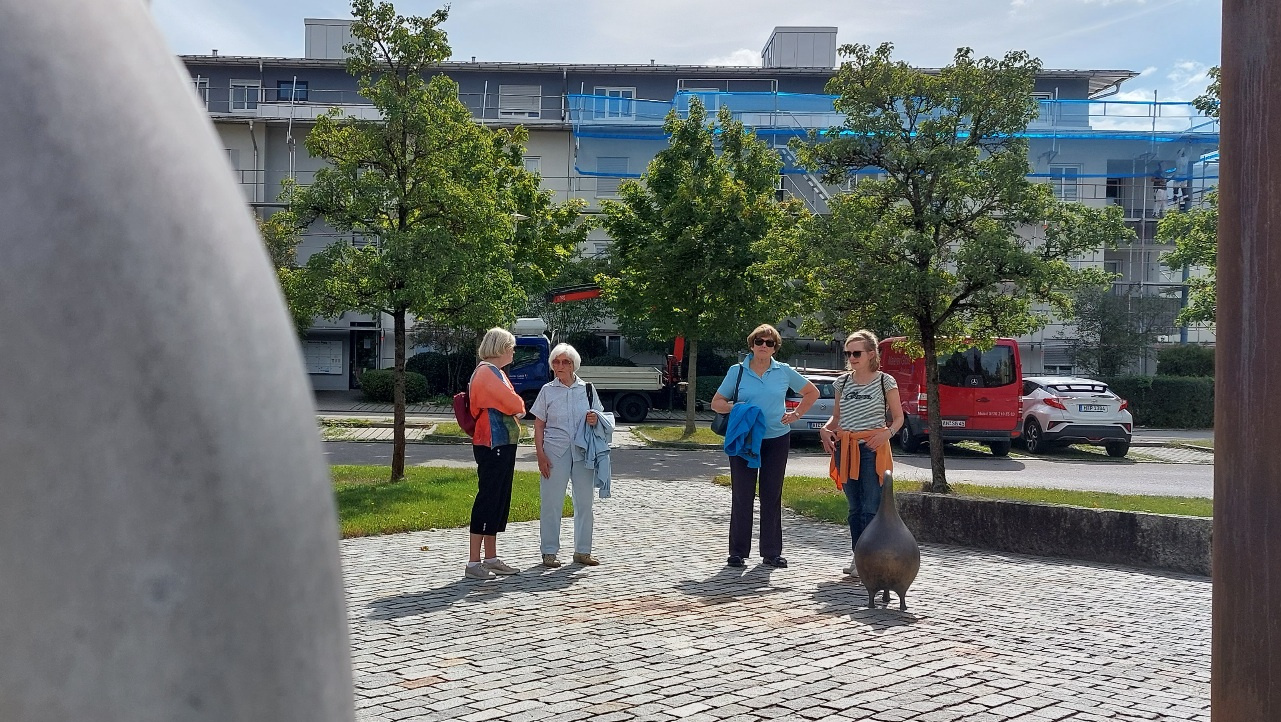 Nach einer kleinen Sommerpause ging es nun wieder los: Bei Sonnenschein und einem Himmel mit beeindruckendem Wolkenbild startete unsere Tour am Nordausgang des Bahnhofs. Der Brunnen am Marieluise-Fleißer-Weg erfreut zu fast jeder Jahreszeit mit bunten Blumen entlang des plätschernden Wasserlaufs bis hin zum Teich.